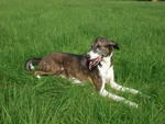 Tyko (Jahrgang 2004, Galgo-Mischling) ist unser dritter Mann. Wenn er nicht gerade auf der Rückbank schläft und von Katzen träumt, bewacht er Auto und Equipment.